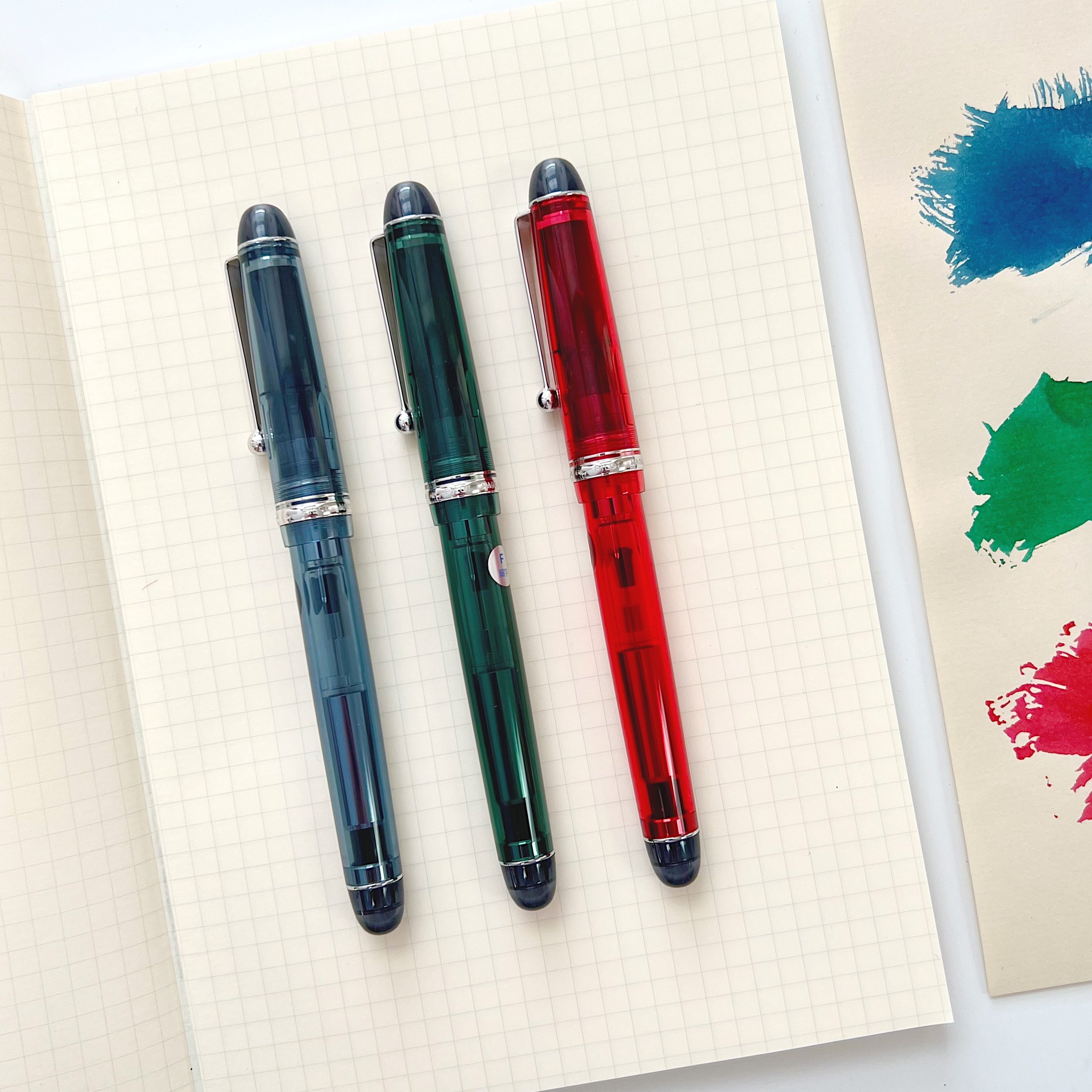 Blue Stone, Forest Green and Grenadine Custom 74 fountain pens